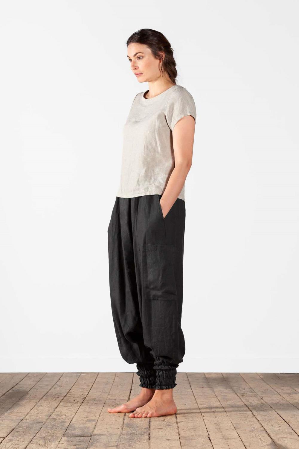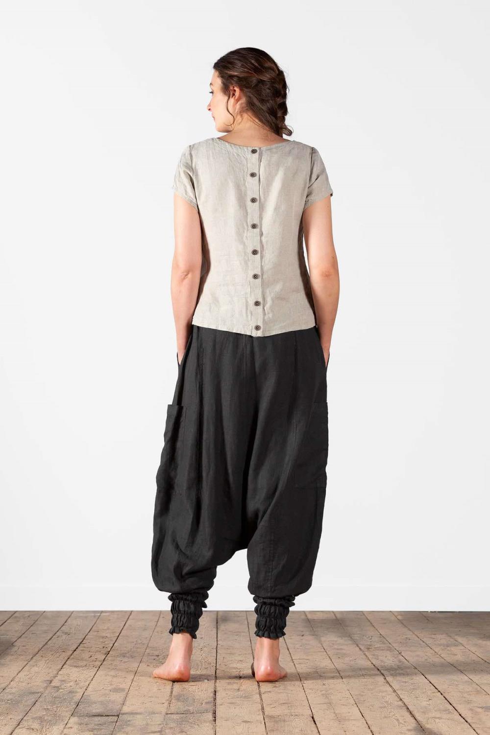 Lin-råvaren har vokst, blitt spunnet til garn, vevd og farget i Europa, og plaggene er deretter også sydd i Europa.