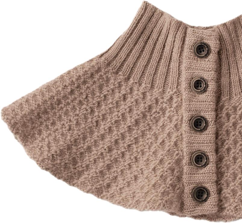 Deilig og varm krage strikket i myk ull. Knapper i front. Lekker å bruke utenpå kjoler, bluser eller under en jakke. God å varm på kalde vinterdager.