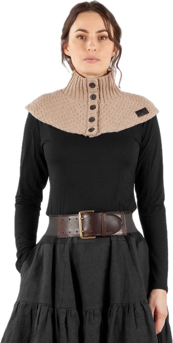 Deilig og varm krage strikket i myk ull. Knapper i front. Lekker å bruke utenpå kjoler, bluser eller under en jakke. God å varm på kalde vinterdager.