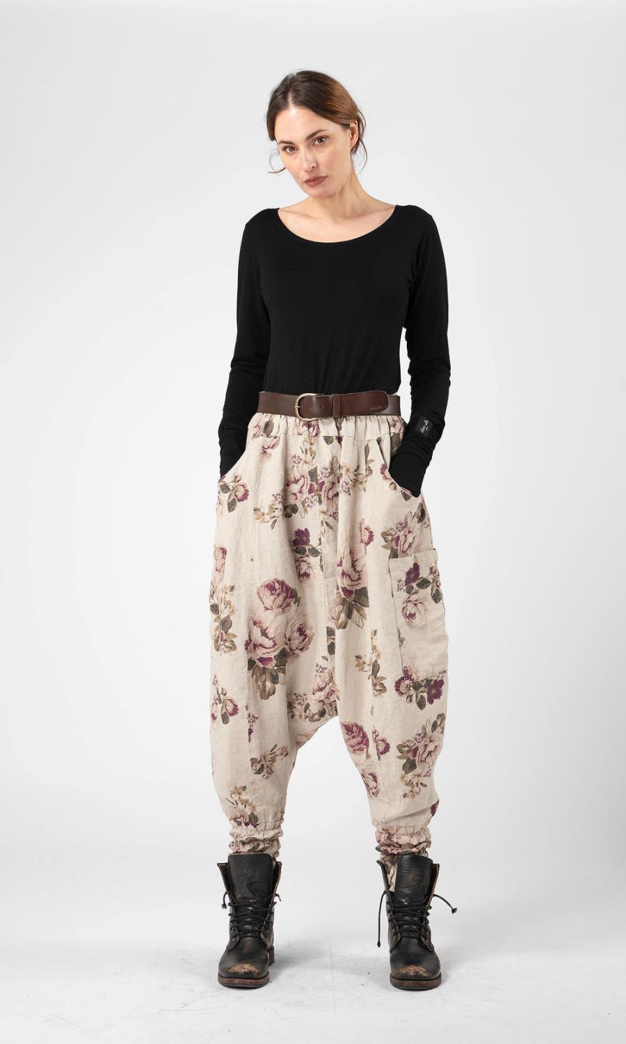 Hipp, hippie, hurra! Haremsbuksene med alt du kan ønske deg. Lavthengende skritt og strikk i midjen og rundt anklene. Både skjulte og utvendige lommer på sidene.