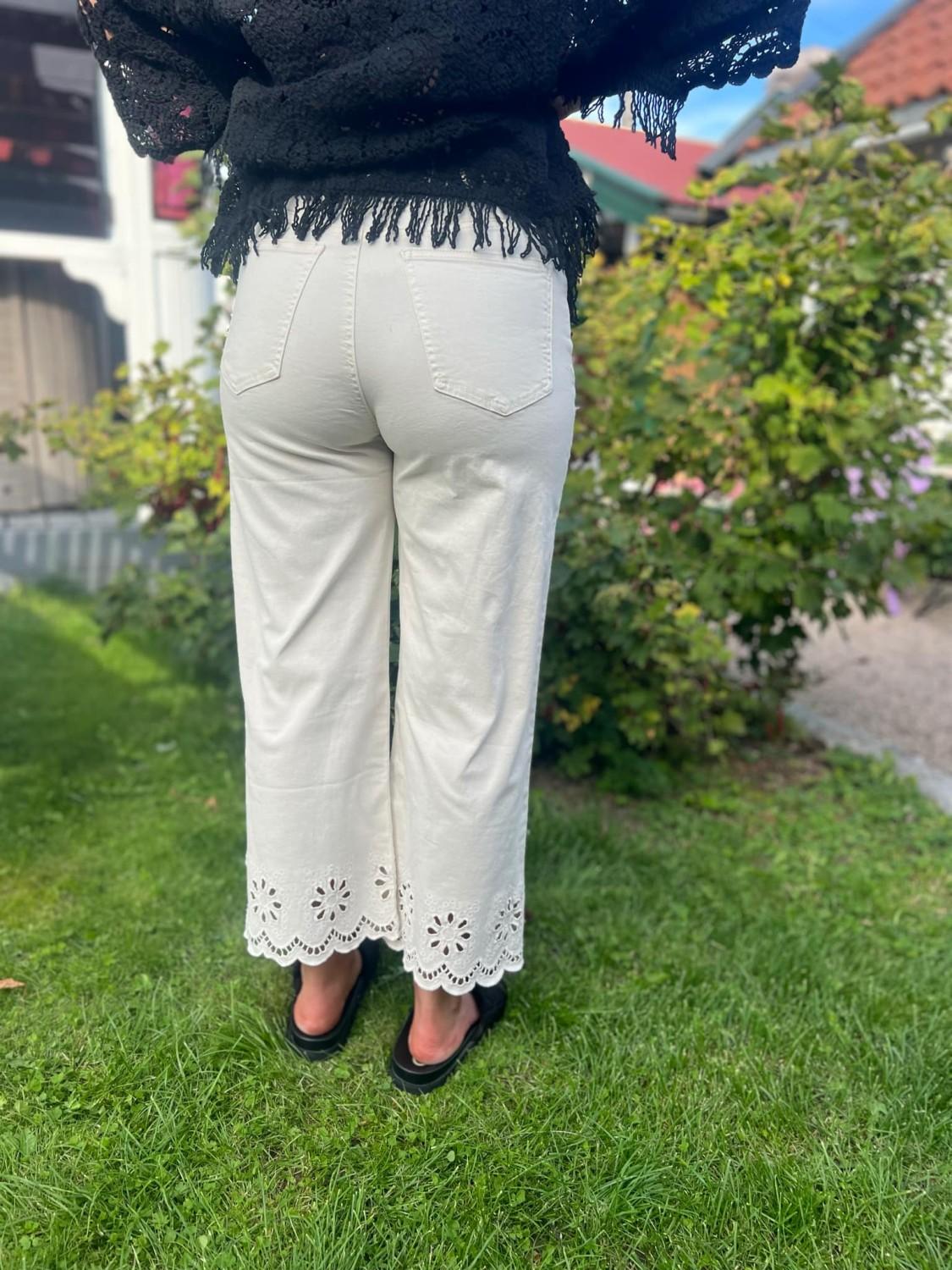 Tøff deminbukse med engelsk blondekant.