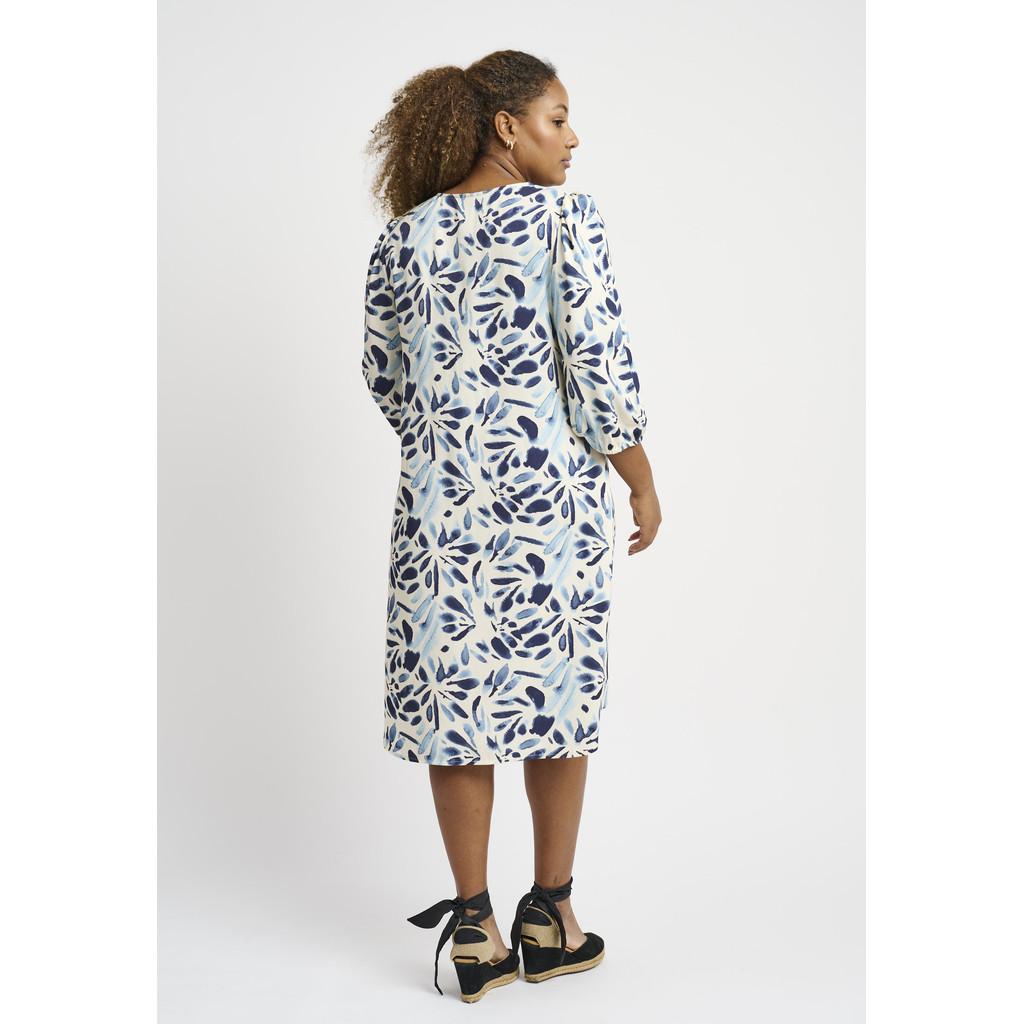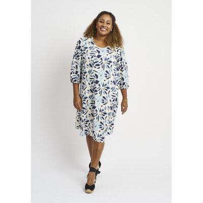 Denne kjolen er et elegant tilskudd til garderoben din, med et vakkert bladmønster og avslappet A-form. Den lette viskosen gjør den behagelig å ha på og perfekt for varme dager. Trekvartermene og den løse passformen skaper en flatterende silhuett som er både stilig og praktisk.