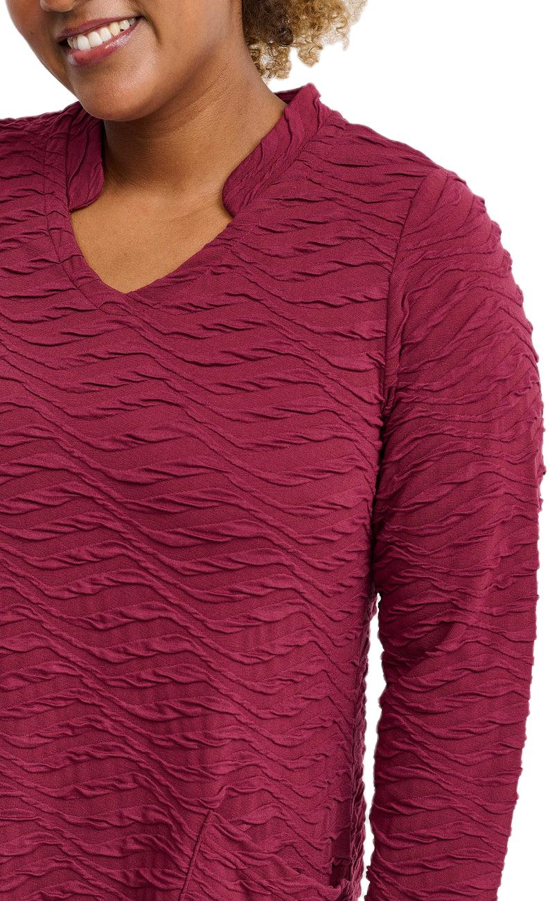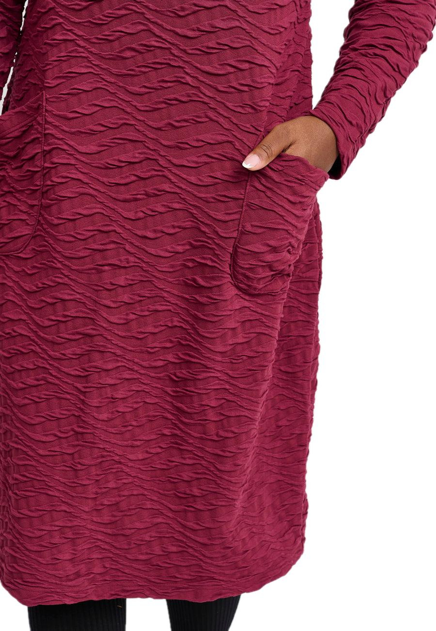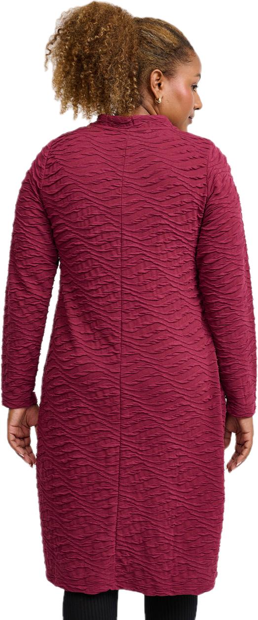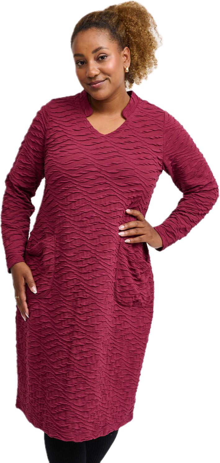 Vakker strukturert kjole med rett snitt og et enkelt, elegant utseende. Den vakre bordeauxfargen og den subtile overflate-strukturen gir karakter, mens den runde halsen og de lange ermene gir en klassisk følelse.