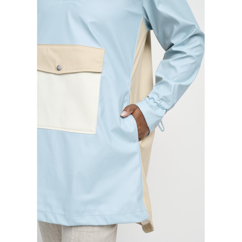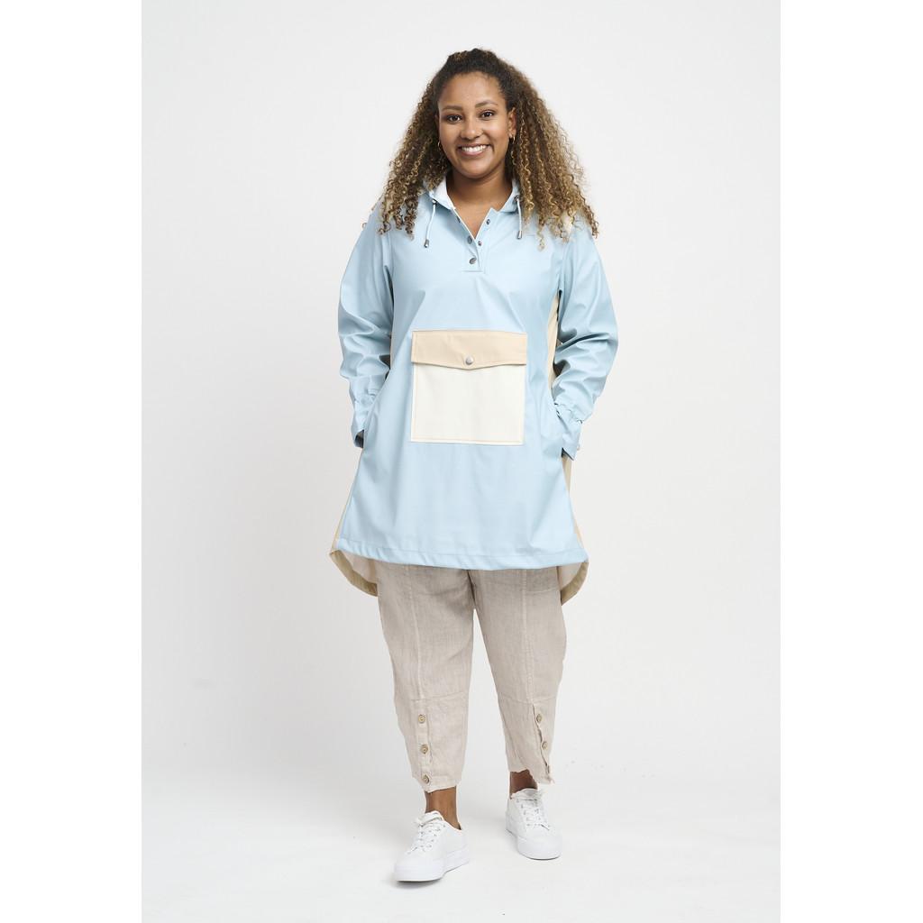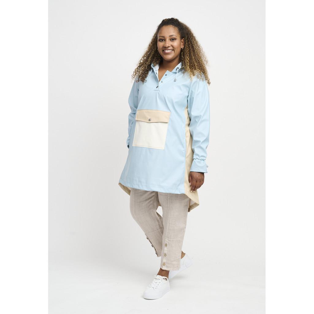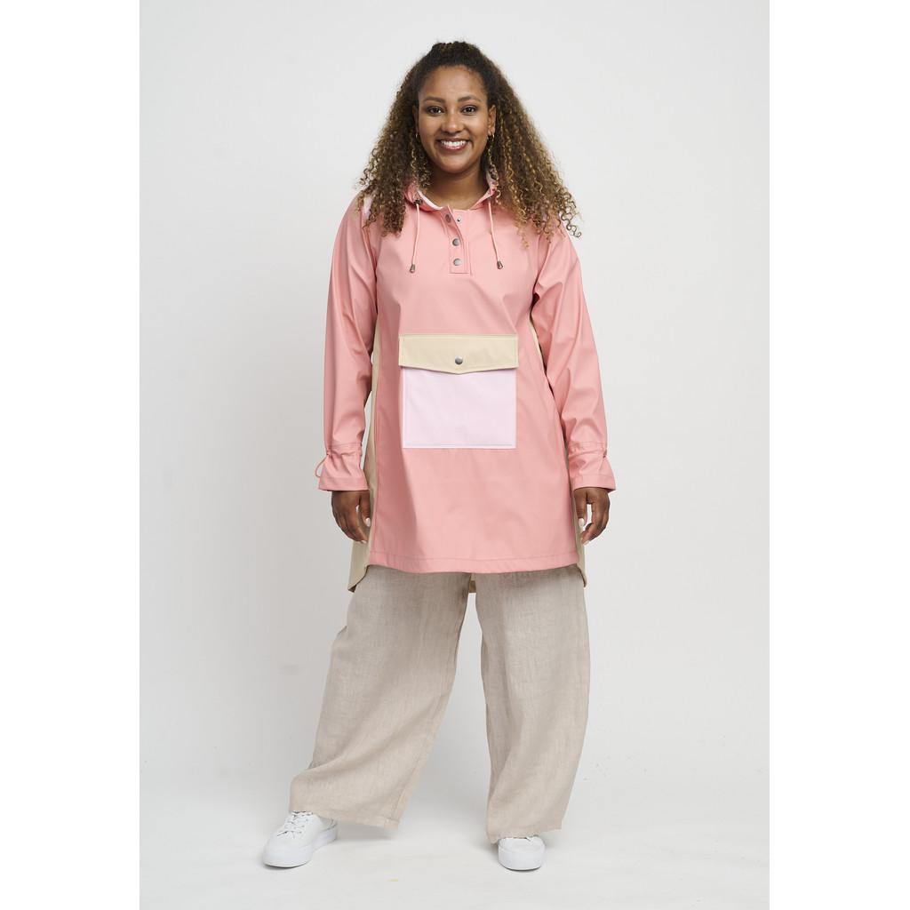 Anorakken har hette, lange ermer og V-hals med knapper på brystet. Den har en stor lomme foran og et lekkert design i forskjellige lyse farger. Jakken er laget av en slitesterk og ren polyesterkvalitet og har en A-formet passform.