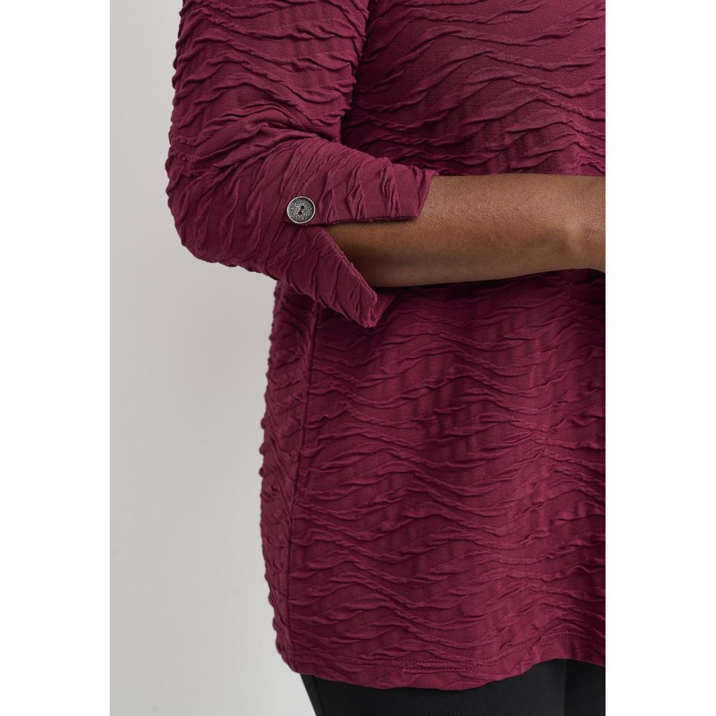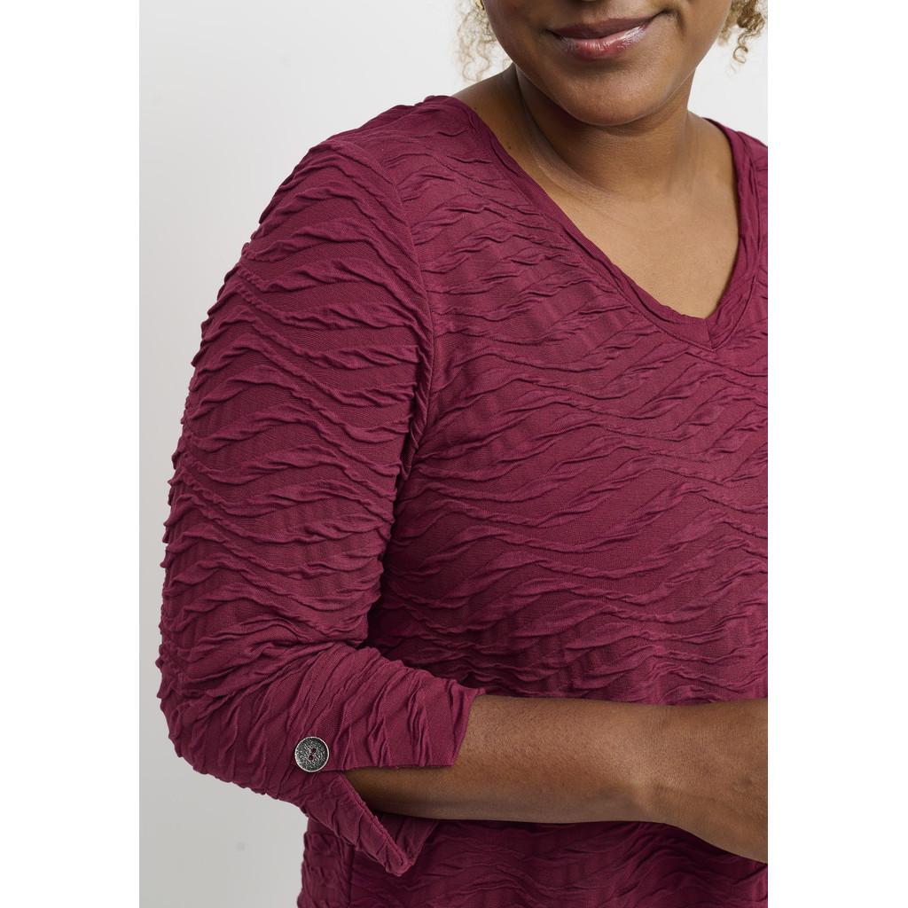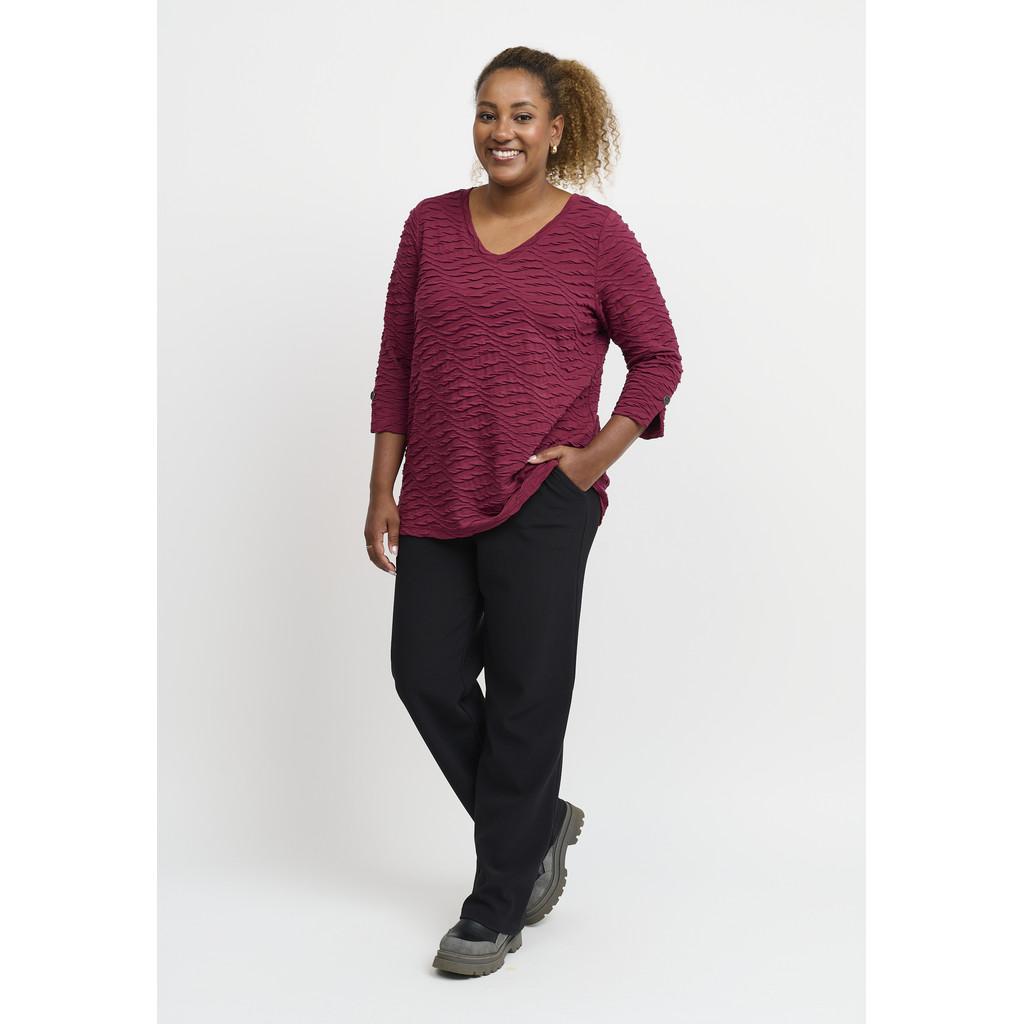 En enkel og komfortabel bluse med et strikket teksturmønster i en vakker burgunderfarge.
