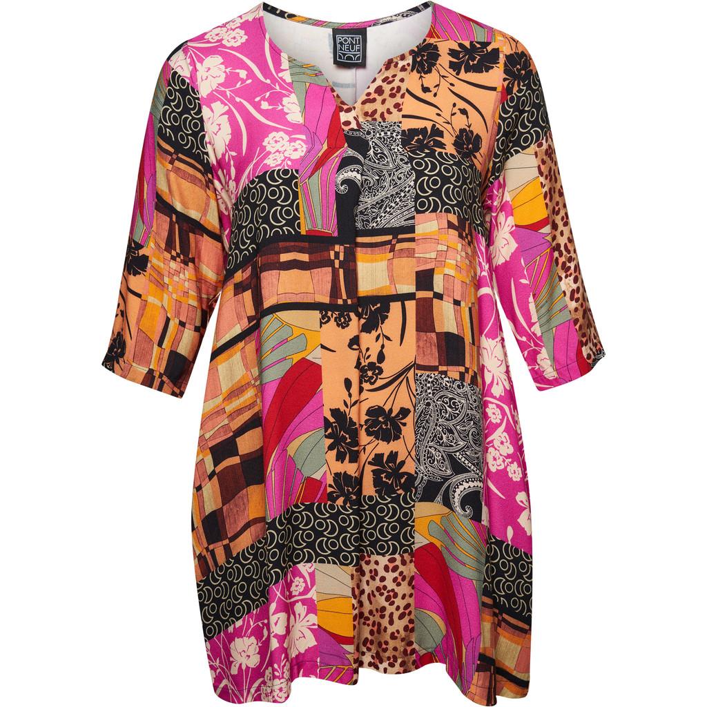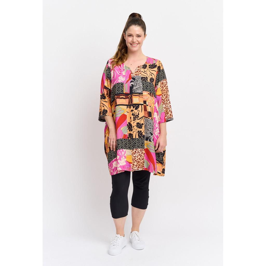 Supersøt tunika med ¾-lange ermer og vakker V-hals. Tunikaen har et fargerikt og unikt design med mange forskjellige trykk. Den er laget av den mykeste, rene viskosekvaliteten, og den har en feminin og A-formet passform.