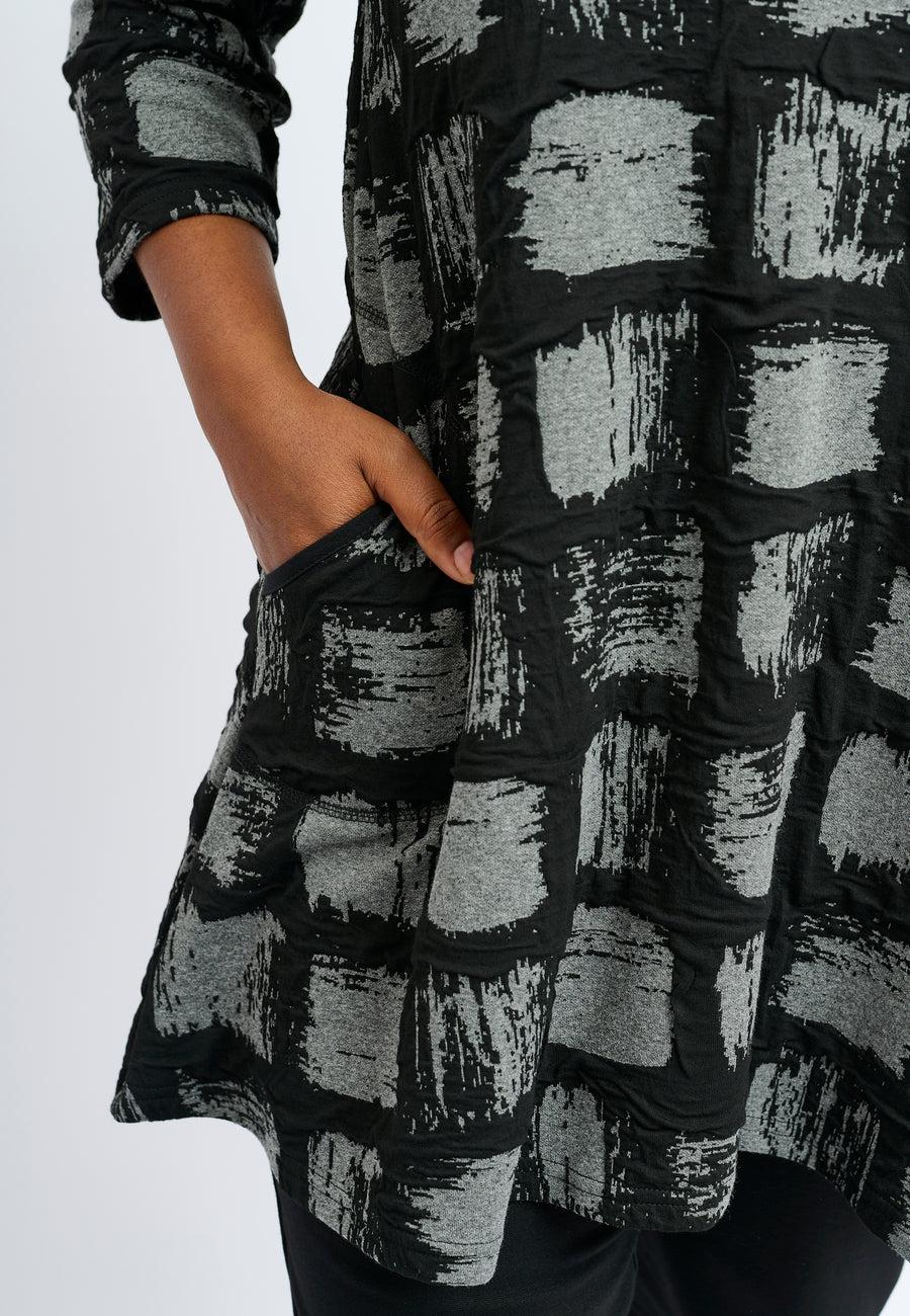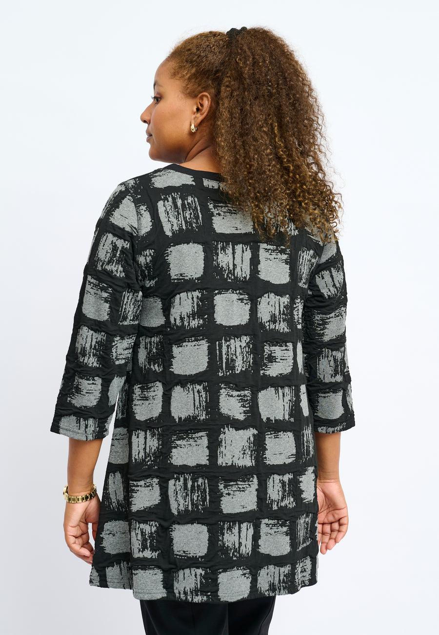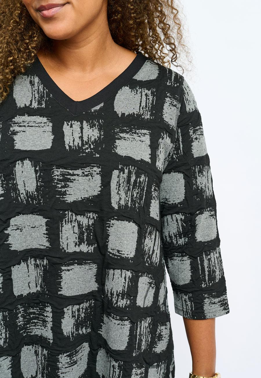 Sprek tunika med et tøft grafisk mønster, 3/4 ermer og rund hals.