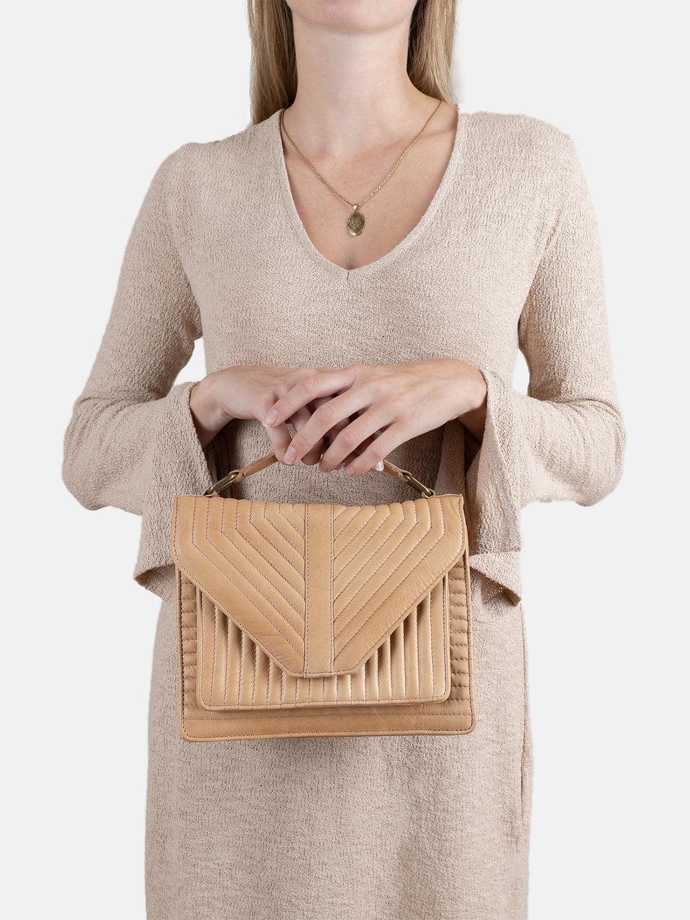 Medium crossbody i hard case design, med en front klafflomme med magnet-lukking og en allover quilt mønster. Åpne for å avsløre et hovedrom med to glidelåslommerom og en mindre glidelåslomme samt en åpen lomme foran. Denne klassiske vesken er stor nok til å romme telefonen, nøklene, kortholderen, notatboken og andre nødvendigheter. Avtakbar og justerbar crossoverreim