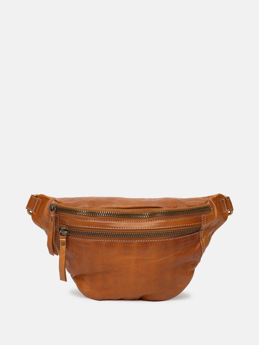 Ellie bumbag er laget av mykt vintage-skinn. Det er 2 hovedlommer som du får tilgang til foran. Lommene lukkes med 8 mm metallglidelåser og alle sømmer er laget med kontrastfargesøm. Stroppen kan justeres.