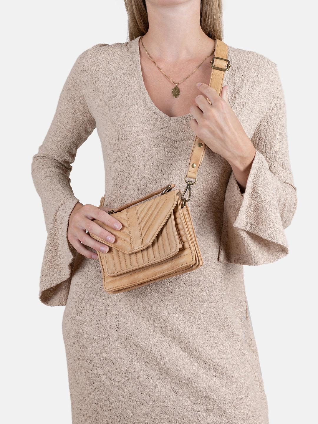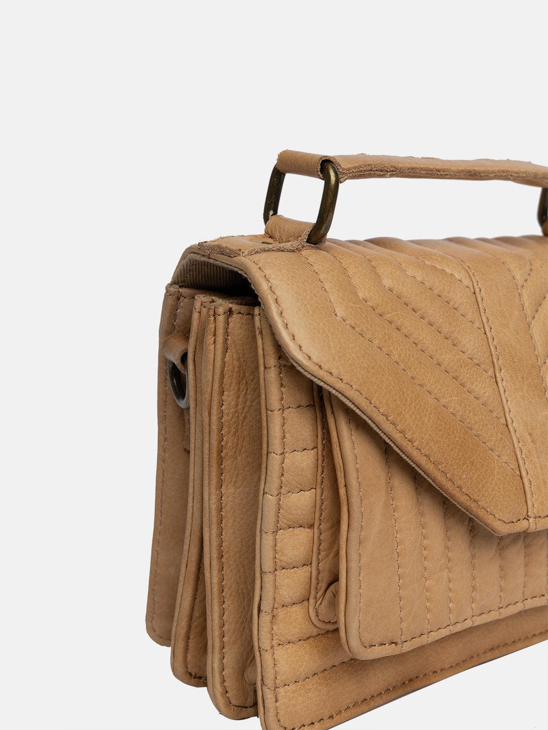 Liten crossover i hard-case design, med en front klaff-lomme med magnet lukking og en allover quilt mønster. Åpne for å avsløre et hovedrom med to glidelåslommerom og en mindre glidelåslomme samt en åpen lomme foran. Denne klassiske vesken er stor nok til å romme telefonen, nøklene, kortholderen, notatboken og andre nødvendigheter. Avtakbar og justerbar crossoverreim for personlig tilpasning og et lite håndtak øverst vesken.