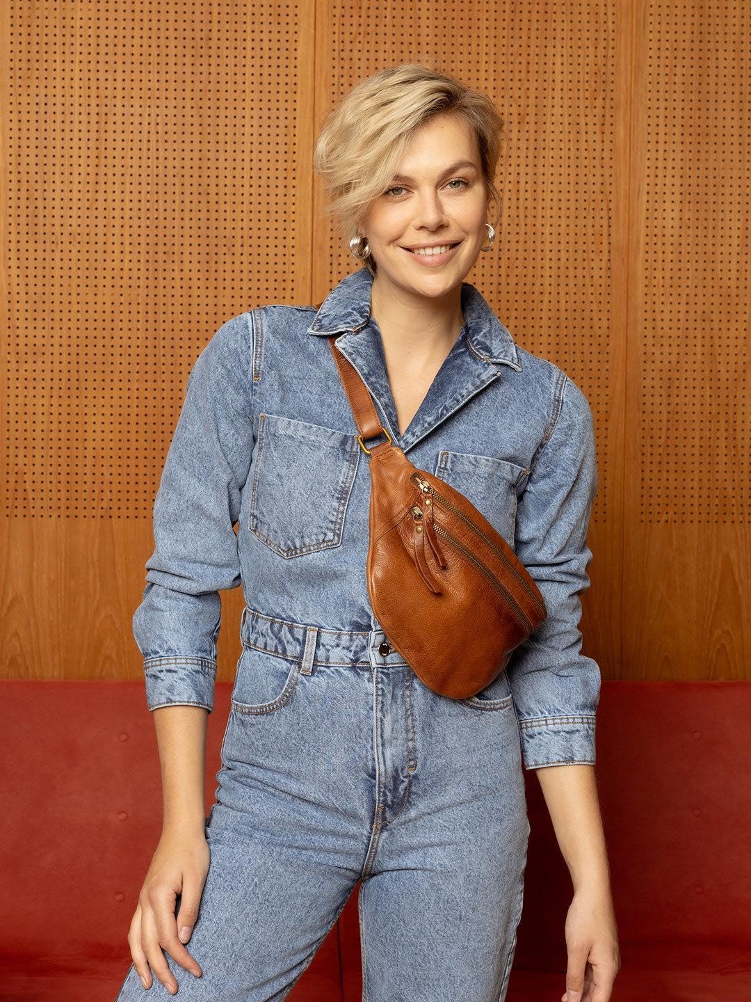Med sin klassiske bumbag-form og myke design er denne stilen en vinner i alle aspekter, for å gå ut, festivaler eller bare daglig bruk. I et praktisk design har vesken to glidelåslommer foran, for nødvendigheter å ta med på farten.