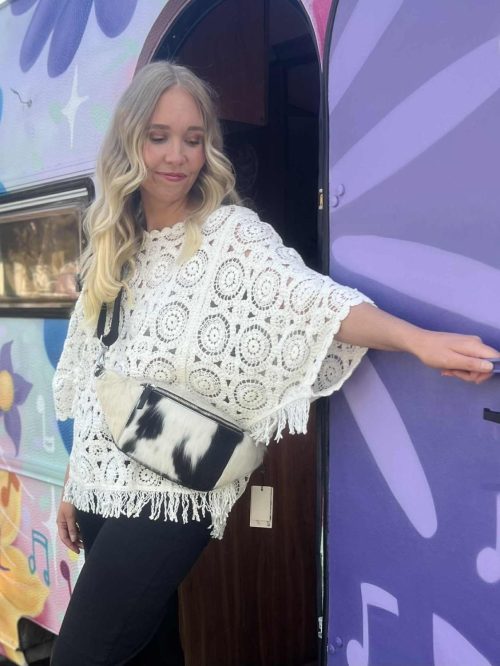 Trendy Jia-bumbag i kuskinn er både stilig og funksjonell. Den har en hovedåpning med glidelås for enkel tilgang til dine viktigste eiendeler. I tillegg er det en glidelåslomme på baksiden for mindre gjenstander og en liten glidelåslomme inni vesken for ekstra organisering. Perfekt for å holde eiendelene dine trygge og innen rekkevidde!
