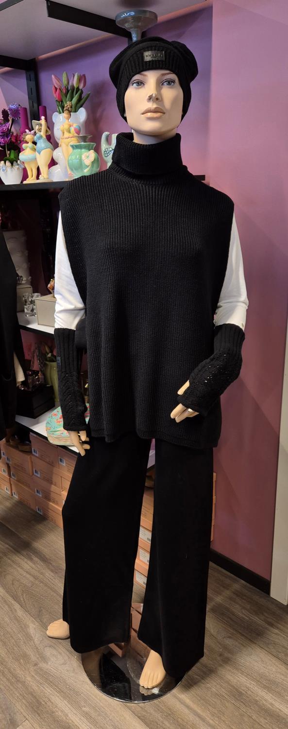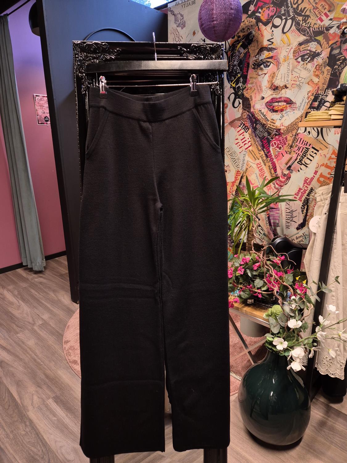 Tøffe bukser i finstrikk med rette, vide ben, strikk i livet og lommer i siden. Helt nydelig å ha på.