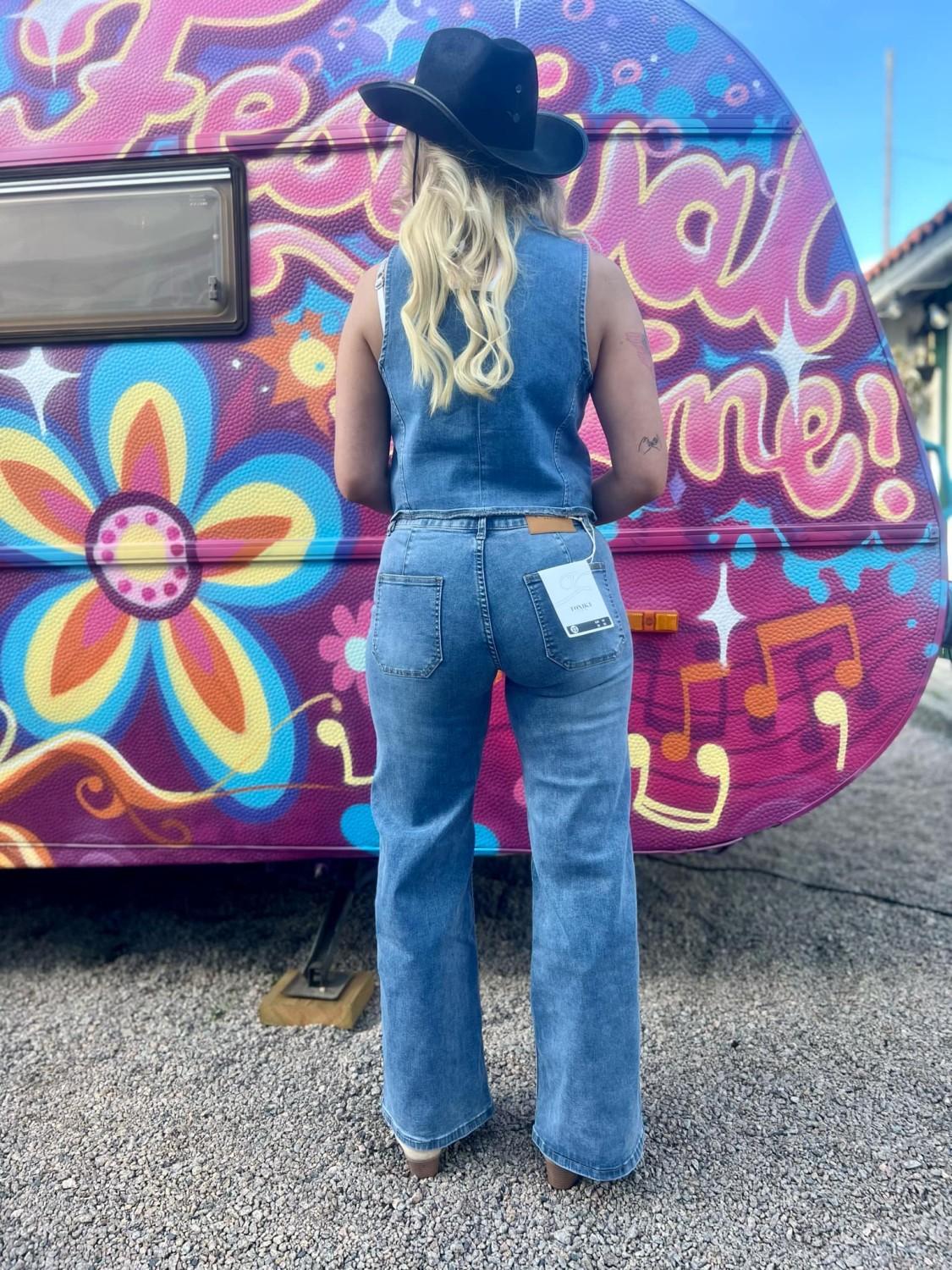 Sjekk denne tøffe denimbuksa! Buksen har strech, to baklommer, to frontlommer og gylf med glidelås. Rett modell. Normal i størrelsen.