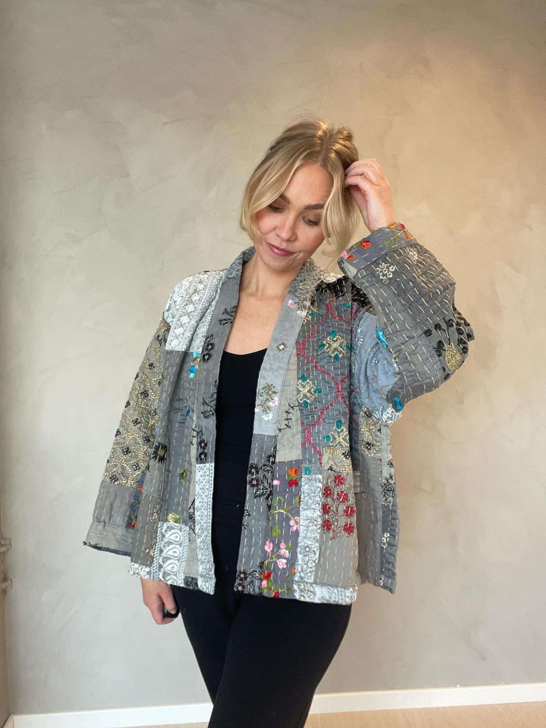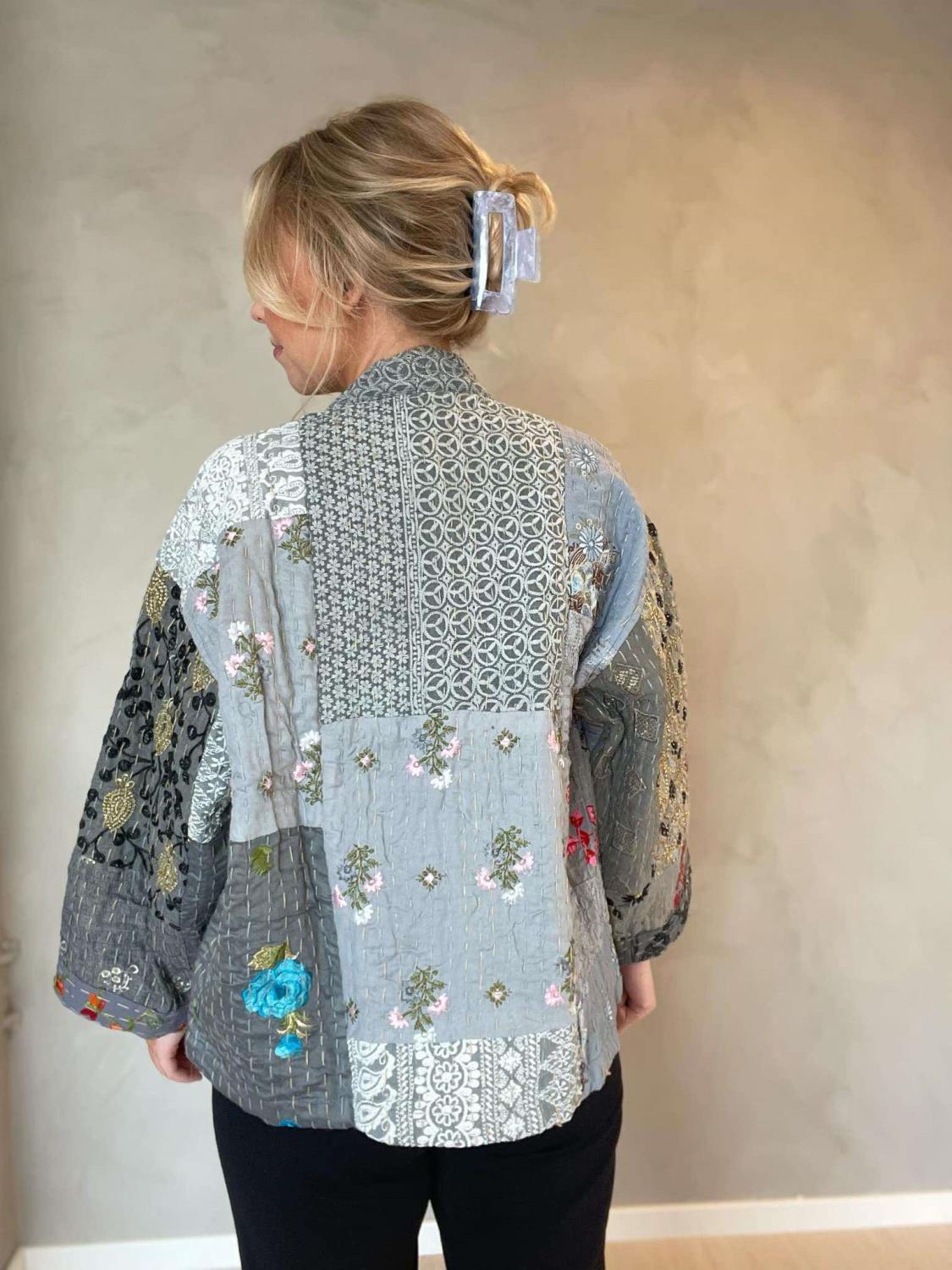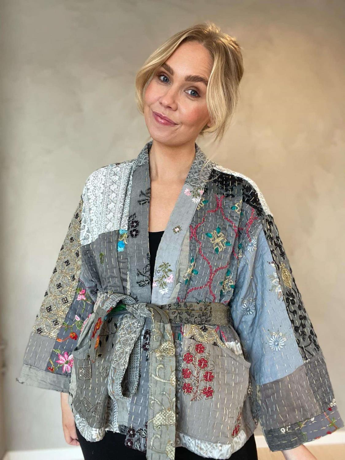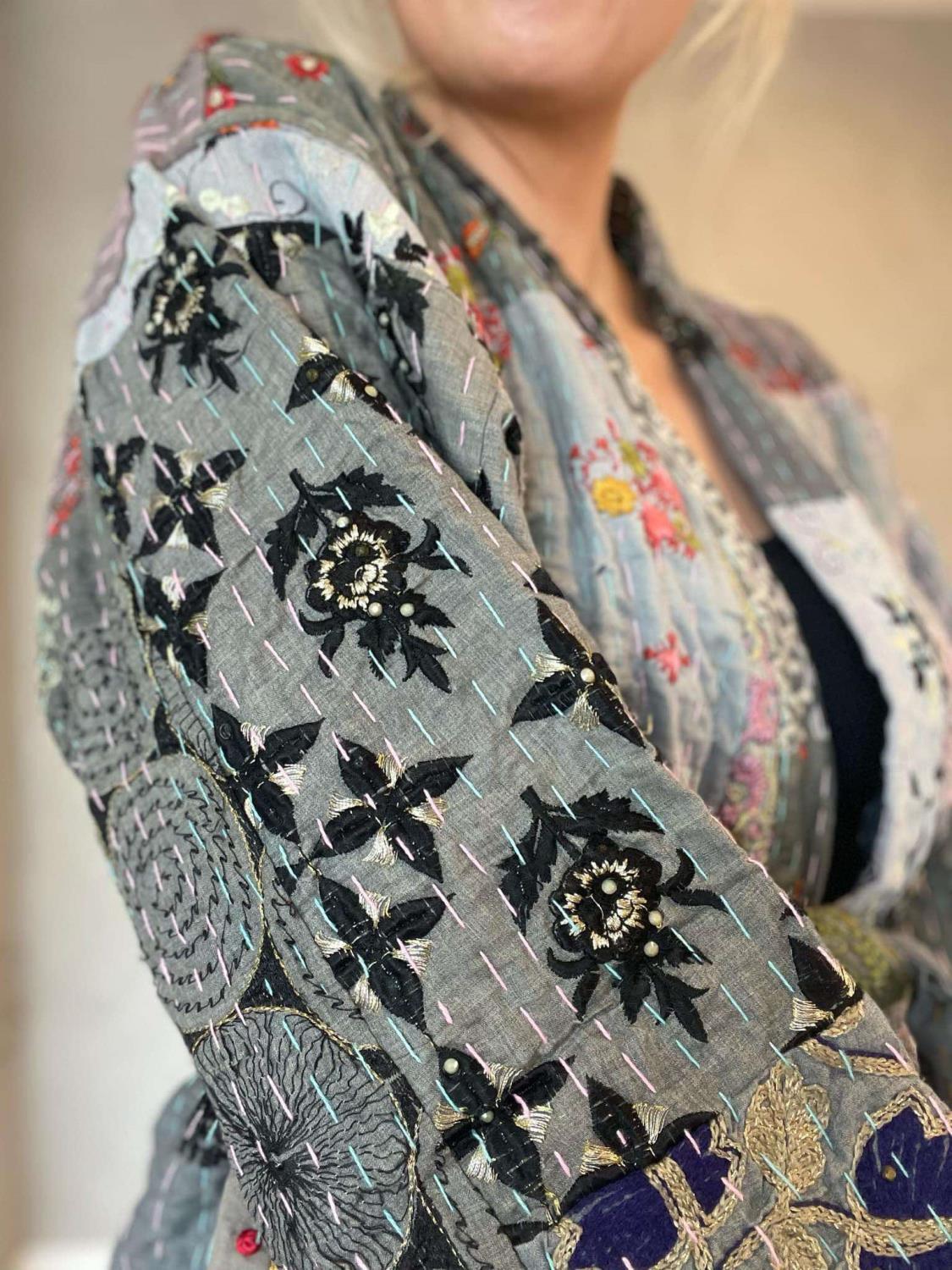 Den vakreste quiltede jakke fra vårt nye og unike merke Wauw. Jakken er åpen uten knapper, men har med et løst belte. Den har 2 påsydde lommer. Ermene er 3/4 lange. Jakka har de vakreste broderier, og den er er unik da ingen er like. Hver jakke er sydd sammen av vakre indiske stoffer.