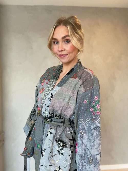 Den vakreste quiltede jakke fra vårt nye og unike merke Wauw. Jakken er åpen uten knapper, men har med et løst belte. Den har 2 påsydde lommer. Ermene er 3/4 lange. Jakka har de vakreste broderier, og den er er unik da ingen er like. Hver jakke er sydd sammen av vakre indiske stoffer.