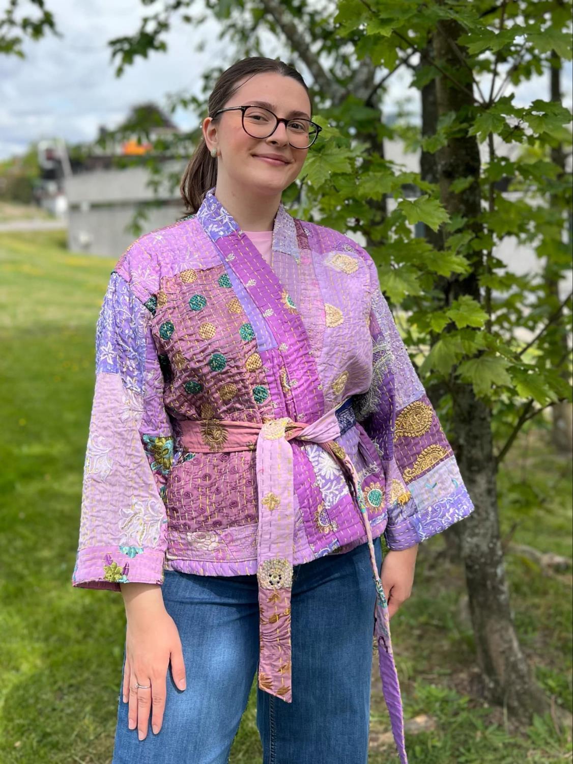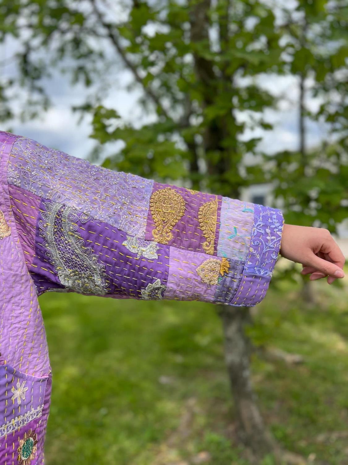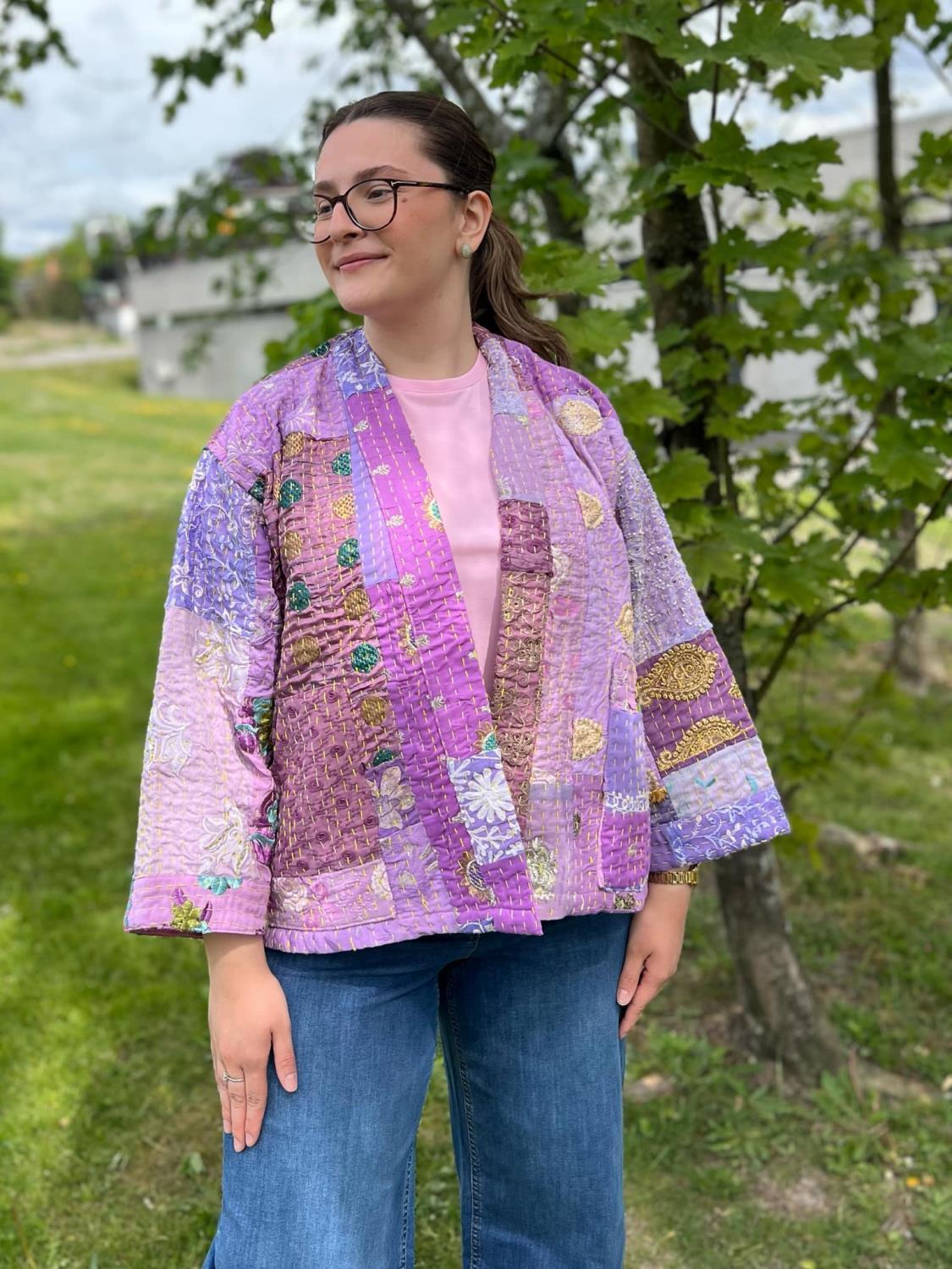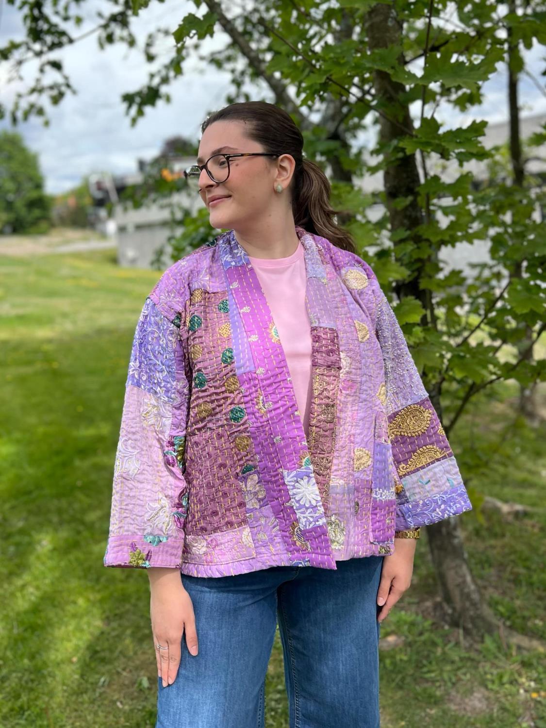 Den vakreste quiltede jakke fra vårt nye og unike merke Wauw. Jakken er åpen uten knapper, men har med et løst belte. Den har 2 påsydde lommer. Ermene er 3/4 lange. Jakka har de vakreste broderier, og den er er unik da ingen er like. Hver jakke er sydd sammen av vakre indiske stoffer.