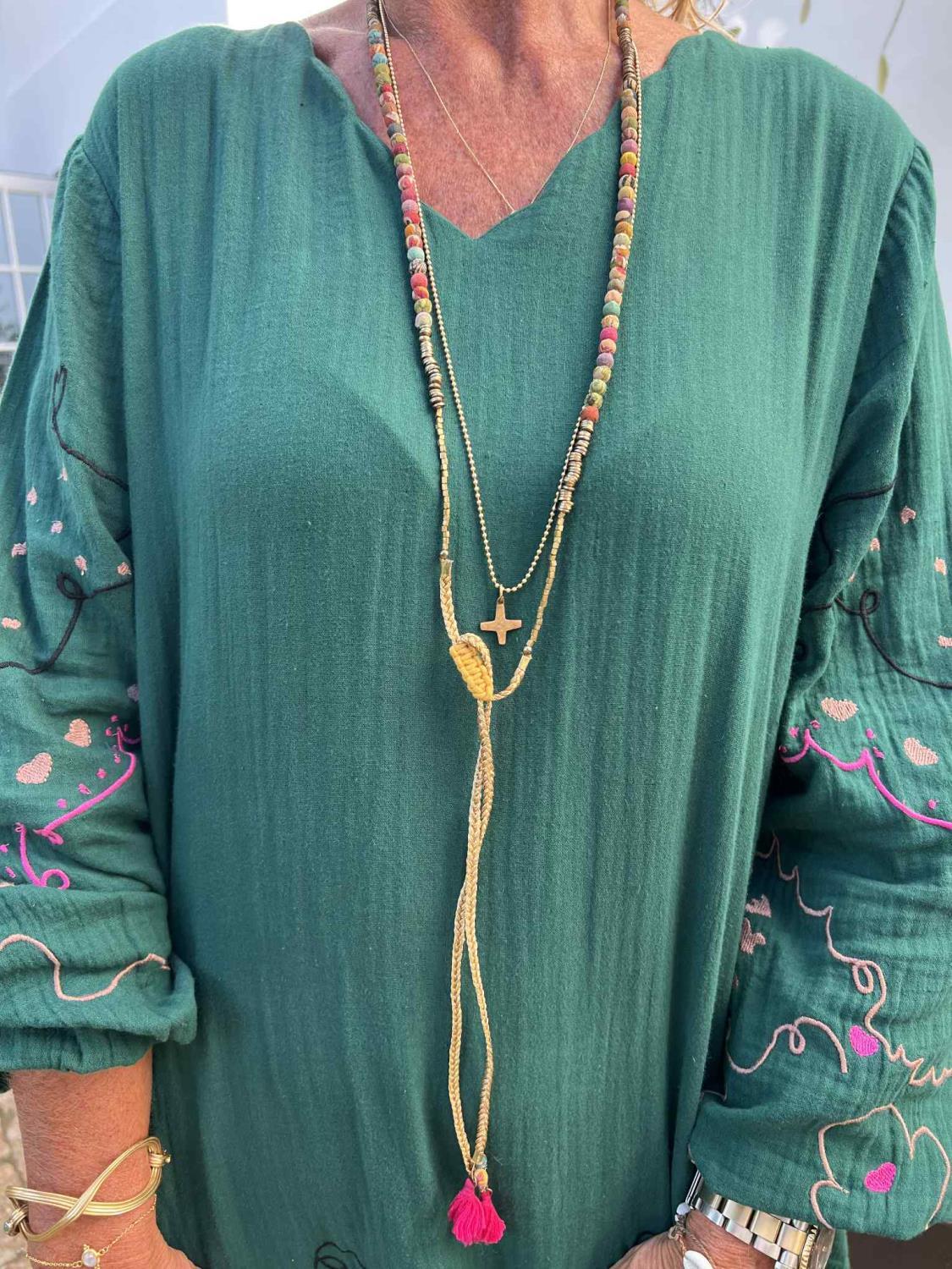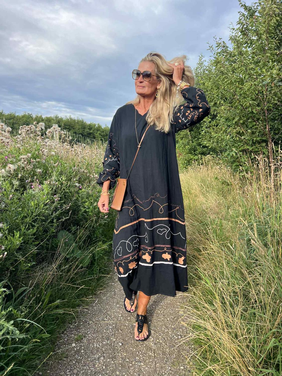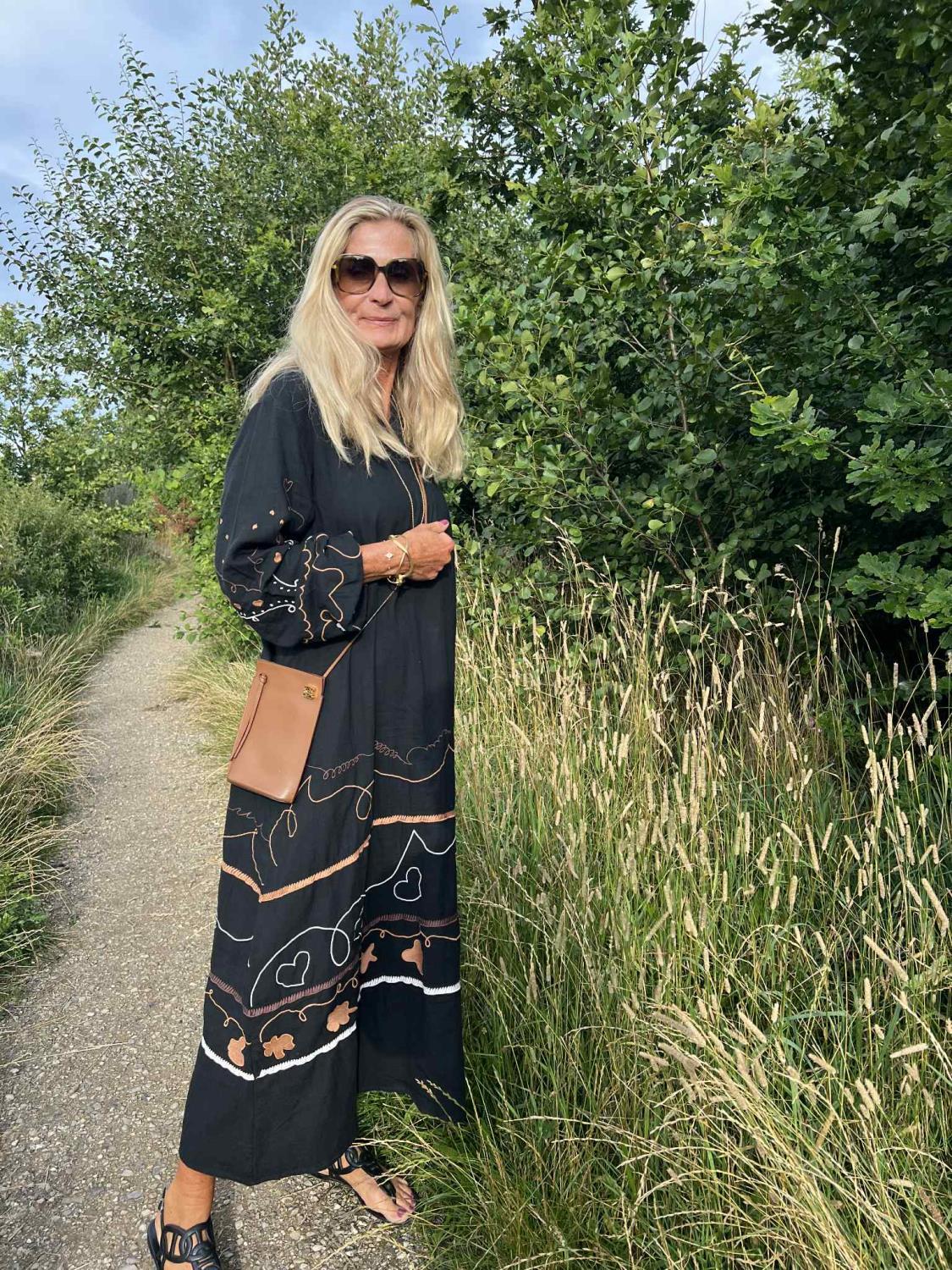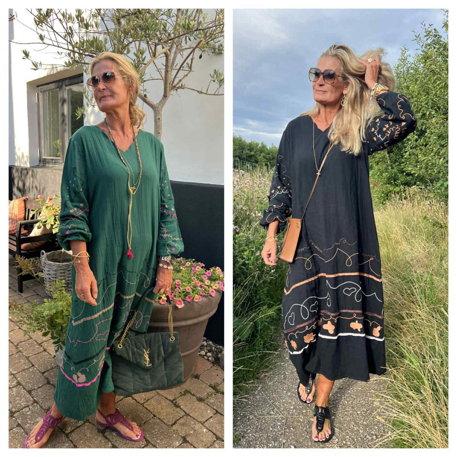 Denne kjolen er i den mykeste bomull med de lekreste broderier og en smigrende V-utringning med bølger.