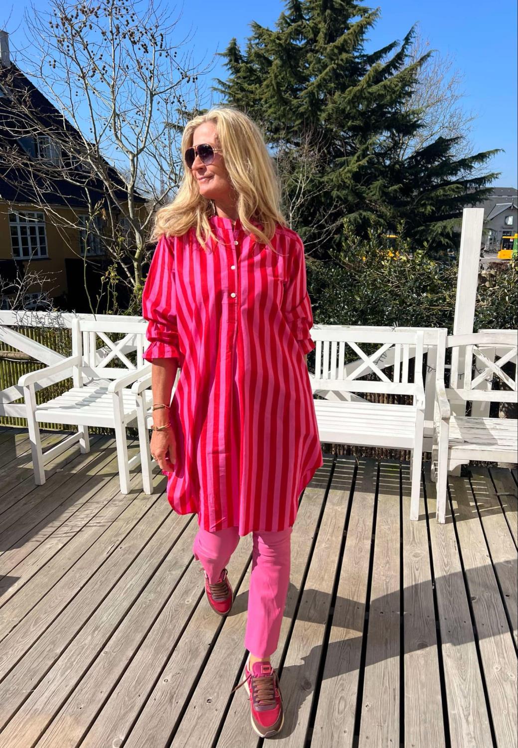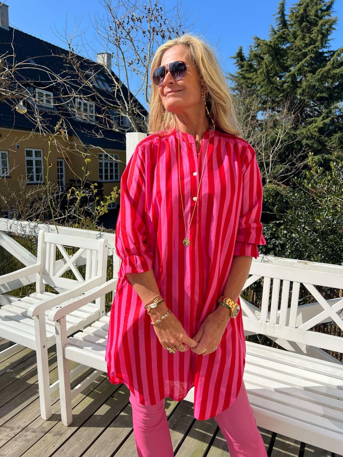 Denne er like fin som kjole som en storskjorte utenfor jeans. Herlig mønster du bare blir glad av!