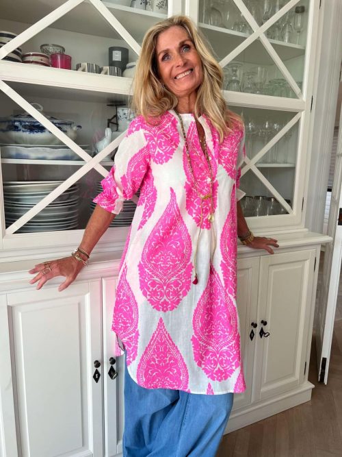 Denne er like fin som kjole som en storskjorte utenfor jeans. Herlig mønster du bare blir glad av!